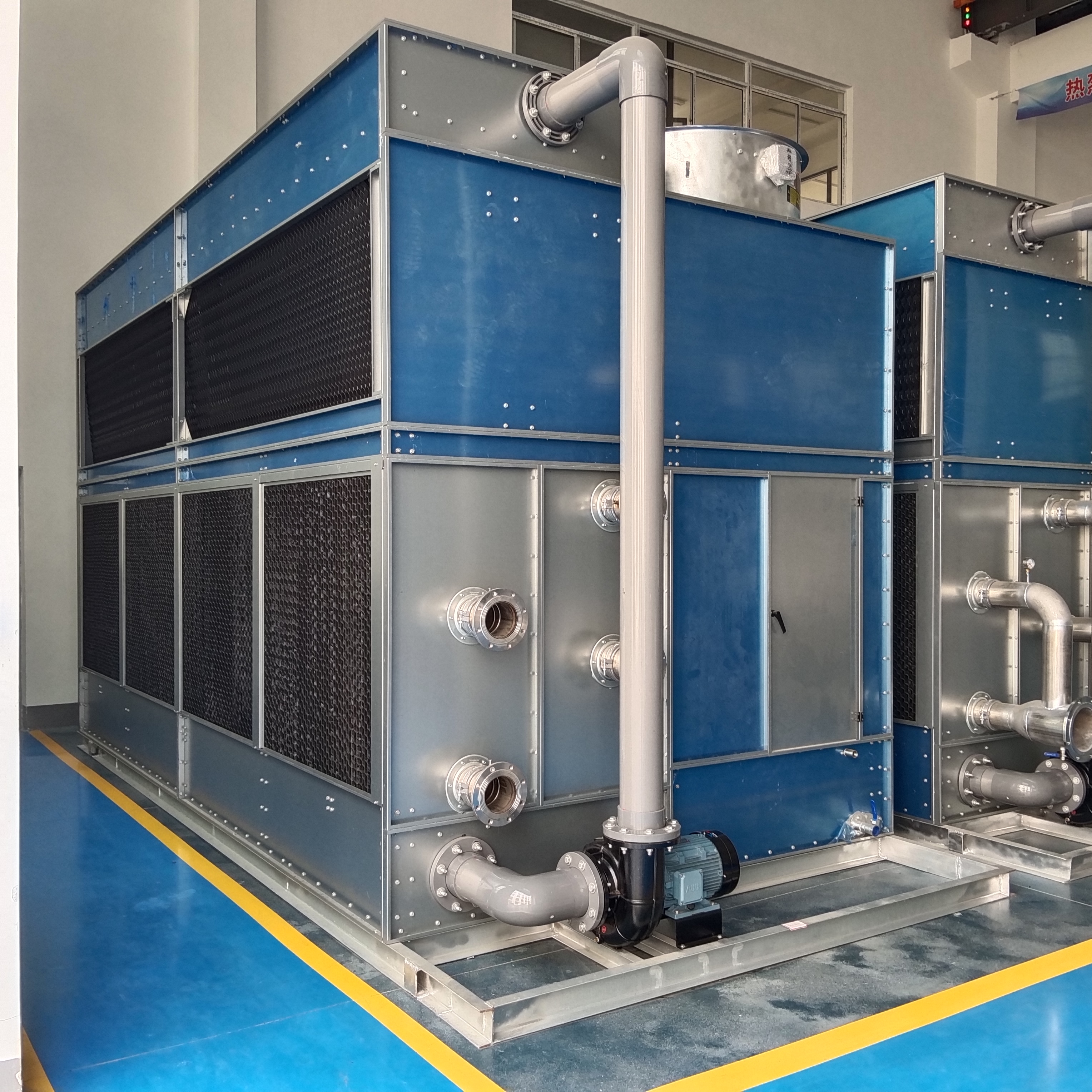 1、閉式冷卻塔實際上是一種蒸發式冷卻塔,冷卻器和濕式冷卻塔的組合,它是臥式的蒸發式冷卻塔,工藝流體在管內流過,空氣 在管外流過,兩者互不接觸。閉式冷卻塔是傳統冷卻塔的一種變形和發展。塔底蓄水池內的水由循環泵抽取后,送往管外均勻地噴淋下來。與工藝式流體熱水或制冷劑和管外空氣并不接觸,成為一種閉式冷卻塔,通過噴淋水增強傳熱傳質的效果。 2、閉式冷卻塔適用于...